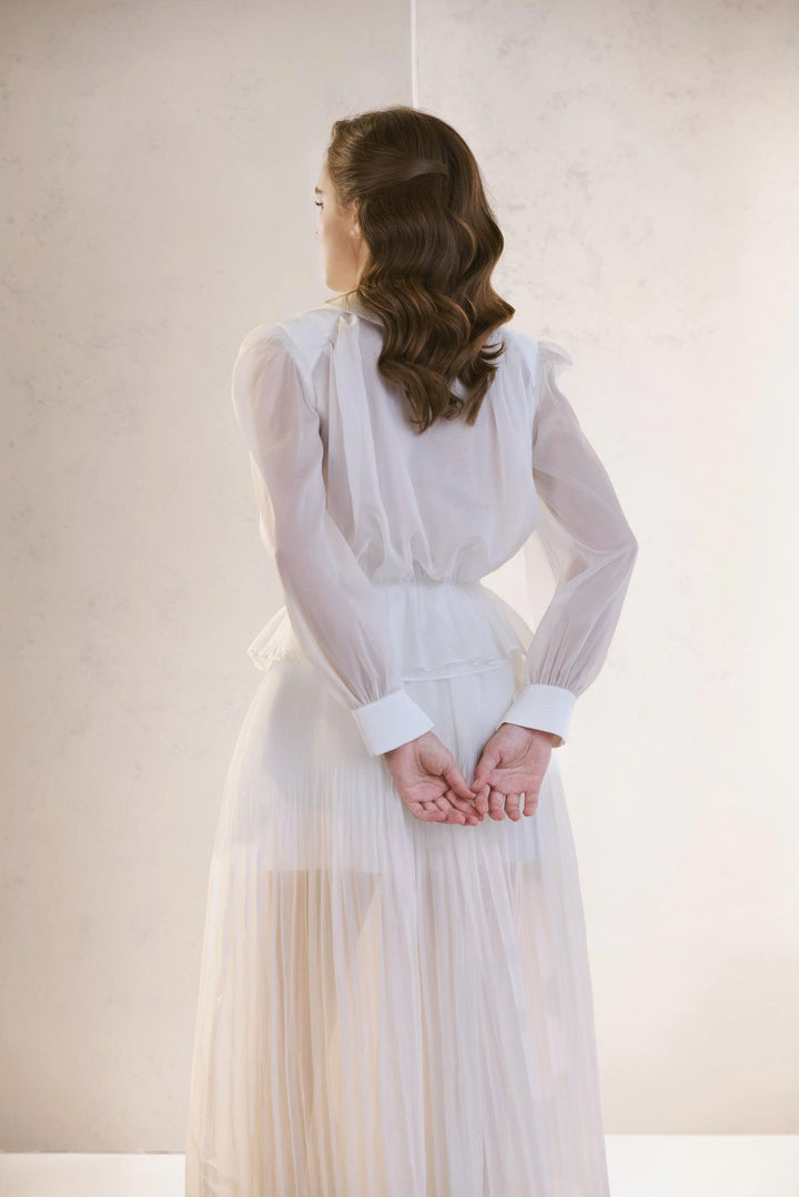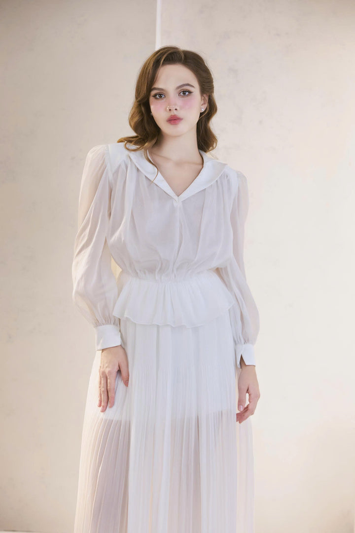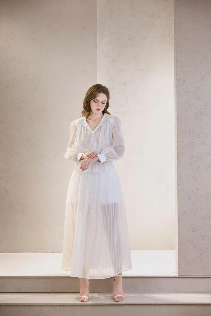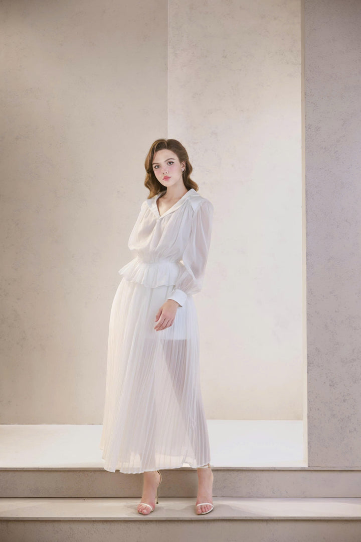ARTEMIS SET - Đầm Trắng Dài Tay Chất Liệu Voan Xếp Li Cao Cấp