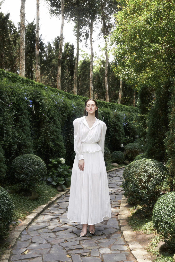 ARTEMIS SET - Đầm Trắng Dài Tay Chất Liệu Voan Xếp Li Cao Cấp