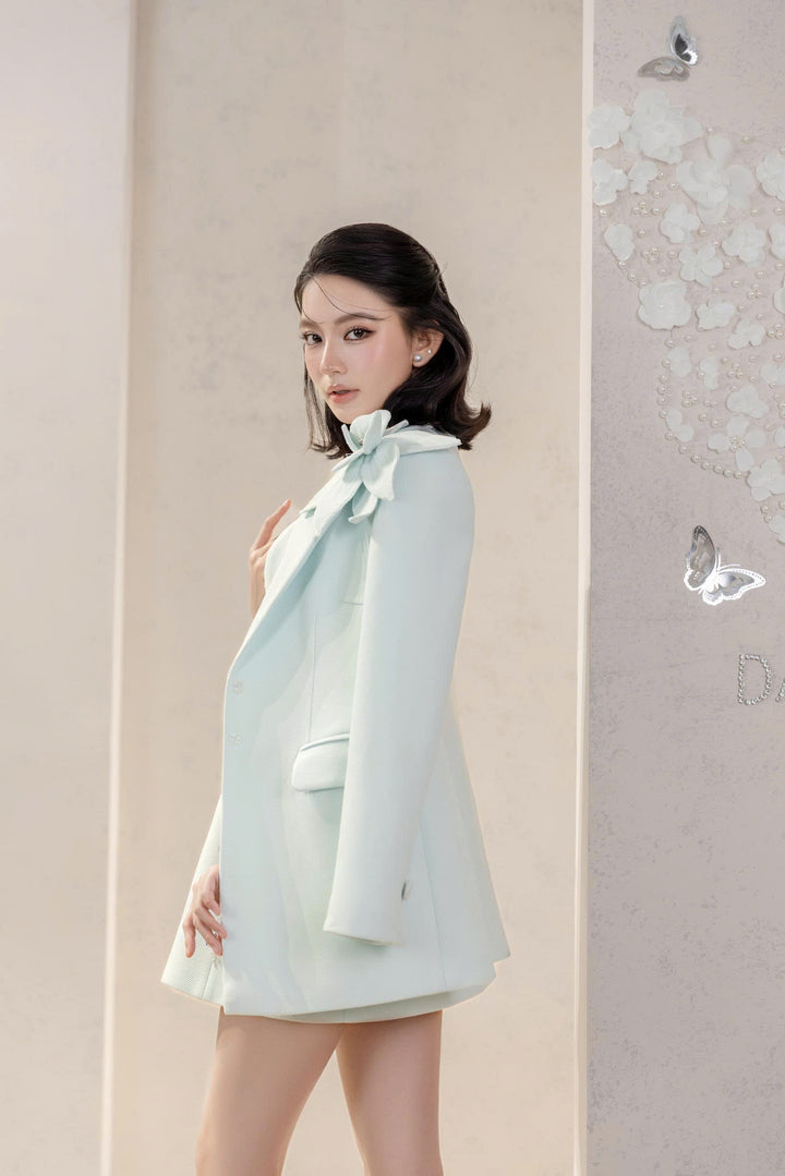 Cùng Darling Diva thể hiện tính cách độc đáo nhưng vẫn giữ trọn vẹn sự thanh lịch với set tweed xanh mint tươi mát, điểm hoa nổi nhẹ nhàng phản chiếu ánh sáng.